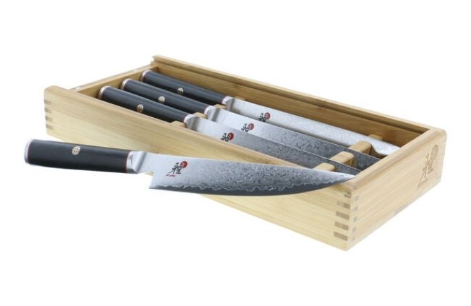 This is a beautiful steak knife setThis is a really great Japanese steak knife. I love the aesthetic of these Japanese steak knives and how beautiful the 64 layers of VG10 steel is on the blade. Even though the layers are pronounced in that beautiful flower Damascus design, it’s also more subtitled in comparison to the Miyabi Kaizen II blades.The Kaizen has a beautiful blade and the Micarta wood handle feels really smooth in hand, and has a nice roundness to it. With the blade having 64 layers of steel, you can really feel how much of a difference that makes when cutting through your steaks. They also come in a wooden presentation box, for easy and safe storage.
