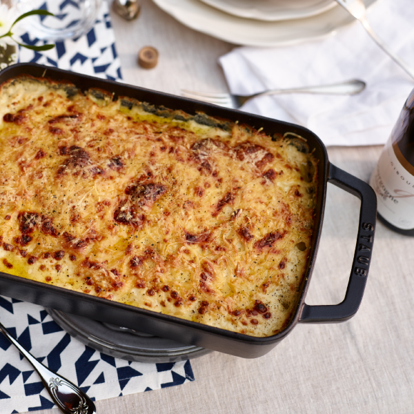 The STAUB cast iron makes the perfect roaster when cooking large batches, weekday dinners, and holiday feasts, including lasagna, casseroles, and desserts, as well as roasted meats and vegetables.