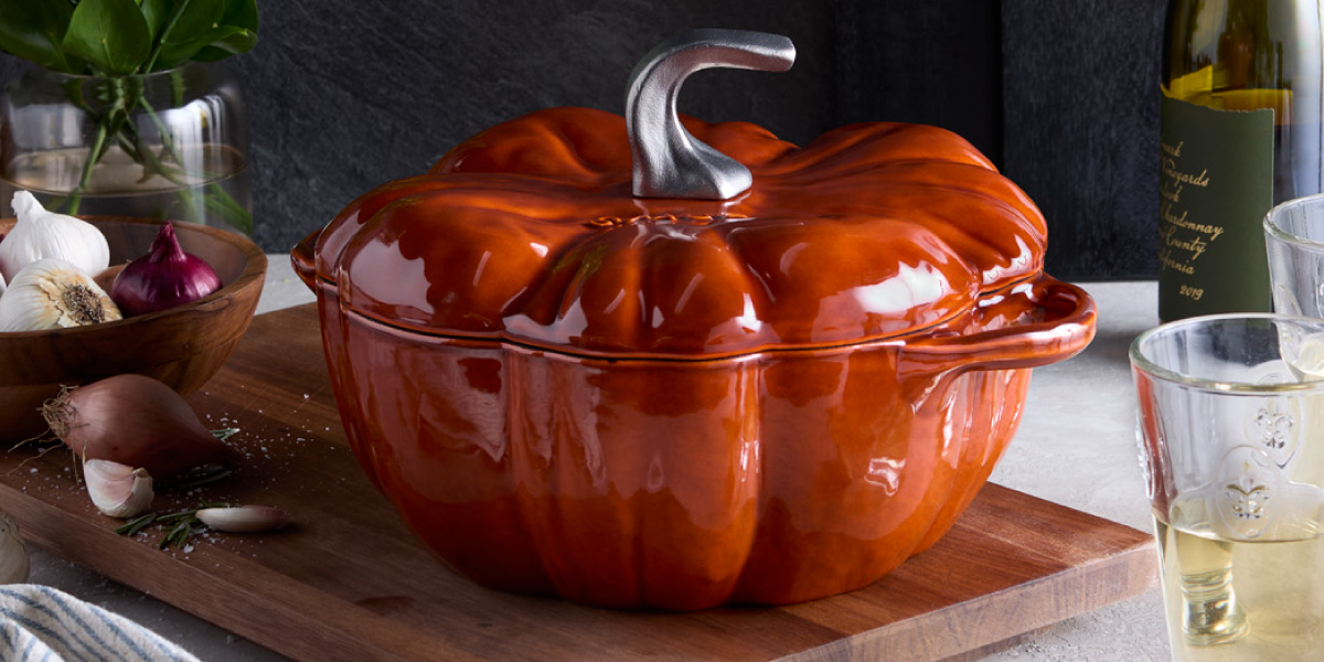 STAUB cast iron Pumpkins make a charming addition to your entertaining table. Slow-cook meat, simmer stews, and bake bread with this expertly-crafted pot that brings magic and whimsy to every meal.