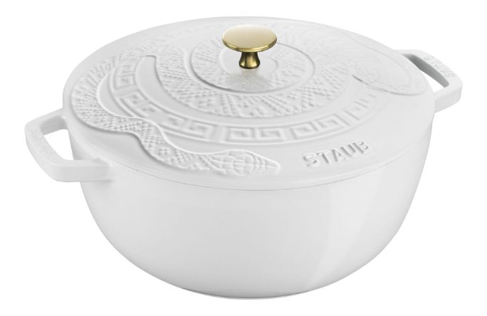 Staub Cast Iron 26-cm_5.25-qt 5.25 qt, Essential French Oven with Snake Lid, pure-white - Factory Second pure-white is rated