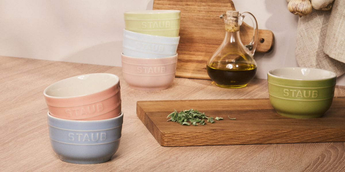 Elevate your spring table with our STAUB stoneware collection featuring pastel-hued bakeware so you can prep, bake, and serve in the same dish. These small, stackable bowls are thoughtfully designed for streamlined meal prep and organized mise en place. Keep chopped garlic, roasted nuts, ground spices, and other prepped ingredients within reach while you cook.