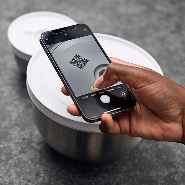 Scan the QR code on our F&S lids to track ingredients and optimize organization.