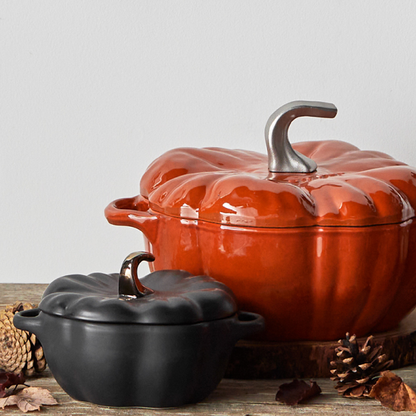 Rooted in French culinary heritage, our pumpkin cocotte features a rich and unrivaled heritage of craftsmanship marked by a passion for exquisite, sculptural details. With their gorgeous porcelain enamel finish and intricate pumpkin design, these cocottes are an elegant yet whimsical addition to your autumn entertaining table.