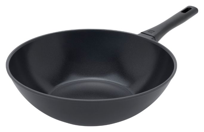 This stir-fry pan excels at searing, sautéing, browning, steaming, stir frying, and deep frying. The wide, angled sides facilitate stirring without spilling – a plus when stir frying meats and vegetables.
