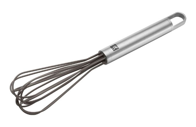 The professional gadget for the ambitious kitchen: Our high-quality ZWILLING Pro whisk supports you when cooking and baking culinary masterpieces. And it helps you to easily and efficiently exceed your ambitions in the kitchen time and time again. The big advantage of the whisk is its silicone front part. This allows you to stir directly in the pot or pan without scratching it. Ideal for refining sauces directly in coated cookware. It also makes whisking even quieter and more pleasant. Further advantages: The silicone is food-safe and heat-resistant. The ergonomic shape of the high-quality stainless steel handle and the special arrangement of the wires enable efficient stirring and thus ensure the best results. The whisk is also a real highlight when hanging on the kitchen counter: Milan-based designers Matteo Thun and Antonio Rodriguez have given it a timeless, minimalist look that fits seamlessly into the Pro series. After use, you can simply clean the handy whisk in the dishwasher. Efficient, ergonomic, easy to clean: the ZWILLING Pro whisk is your professional kitchen tool.