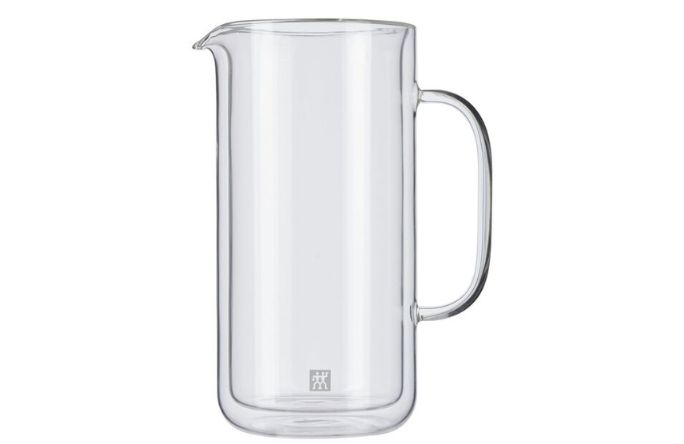 A great double walled carafeA great durable glass carafe perfect for serving juices, water, mixed drinks. With the lightweight double walled borosilicate glass, you get a carafe that will keep your drinks hot or cold, and won’t condensate on the outside or be hot to touch. This also serves as a great extra carafe to use for the Zwilling French Press, the same size carafe, you can have a couple carafes for serving multiple french press drinks.